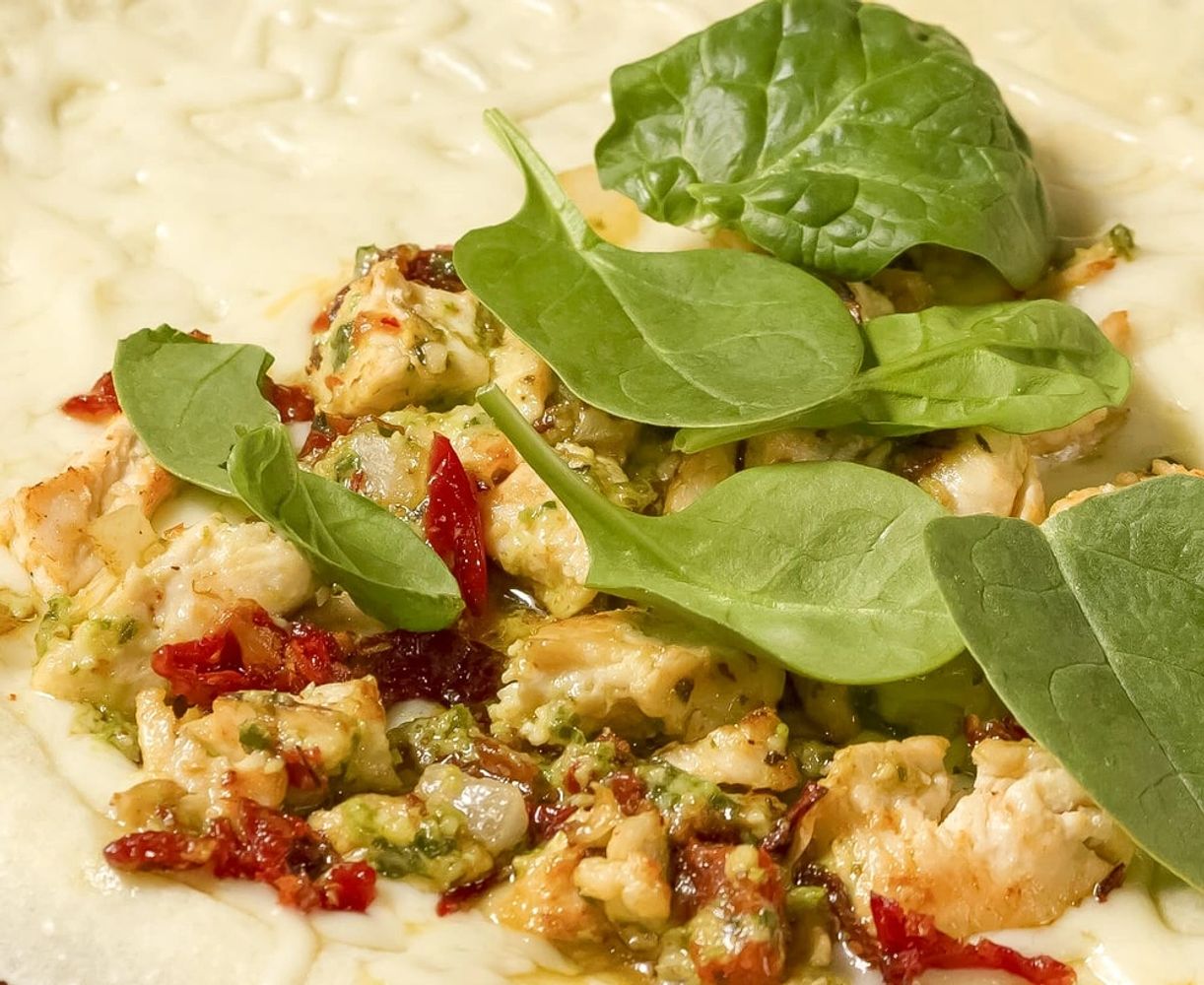 Sun Dried Tomatoes, Spinach, Basil, Creamy Pesto
